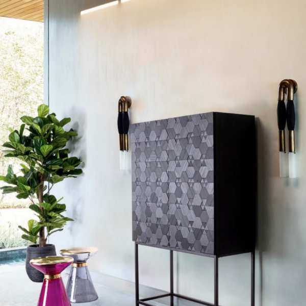 Tavolini Marilyn VT in vetro con piano effetto ottone oro, disponibili Grey e Lilla Lac. Eleganti e glam, ideali per salotti e ambienti di design.