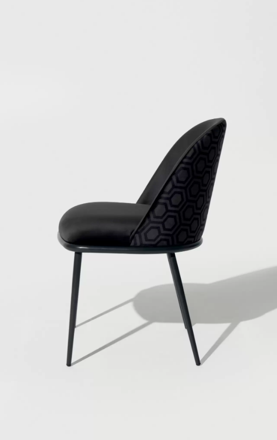 La seduta e lo schienale, ergonomici e accoglienti, sono rivestiti in tessuto o similpelle di alta qualità, materiali selezionati per offrire comfort, durata e facilità di manutenzione. La possibilità di personalizzazione consente di scegliere finiture e rivestimenti in base alle esigenze del cliente, rendendo ogni sedia unica e perfettamente integrata nel proprio ambiente.