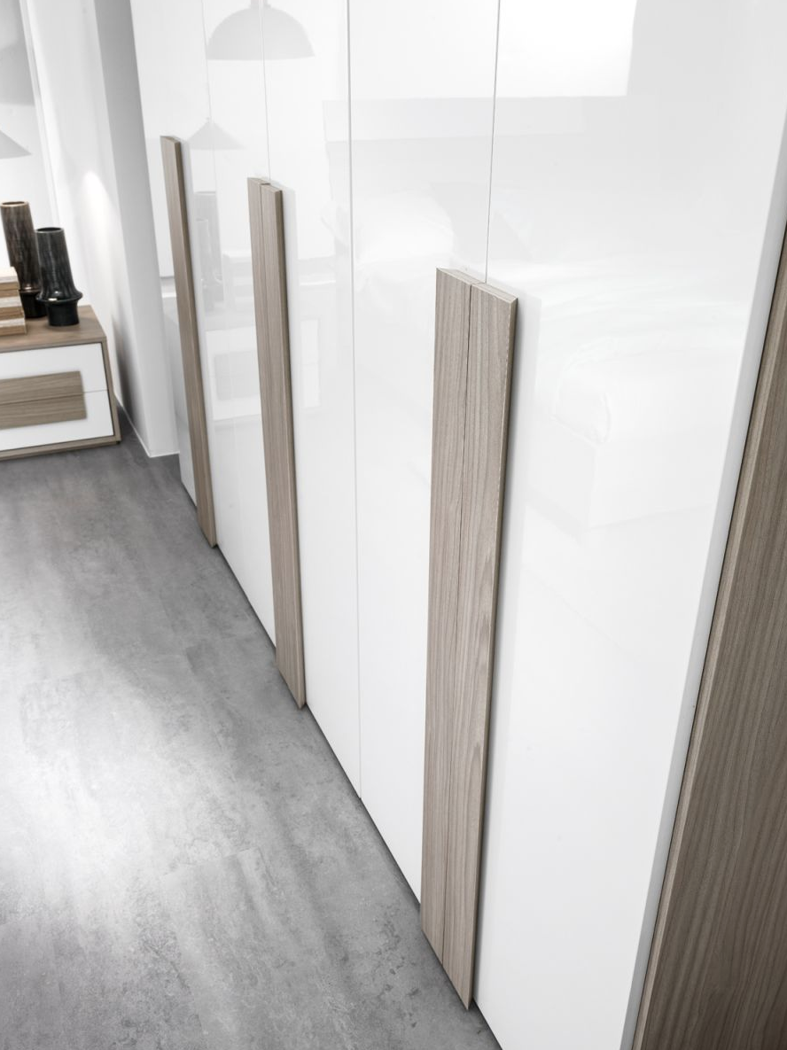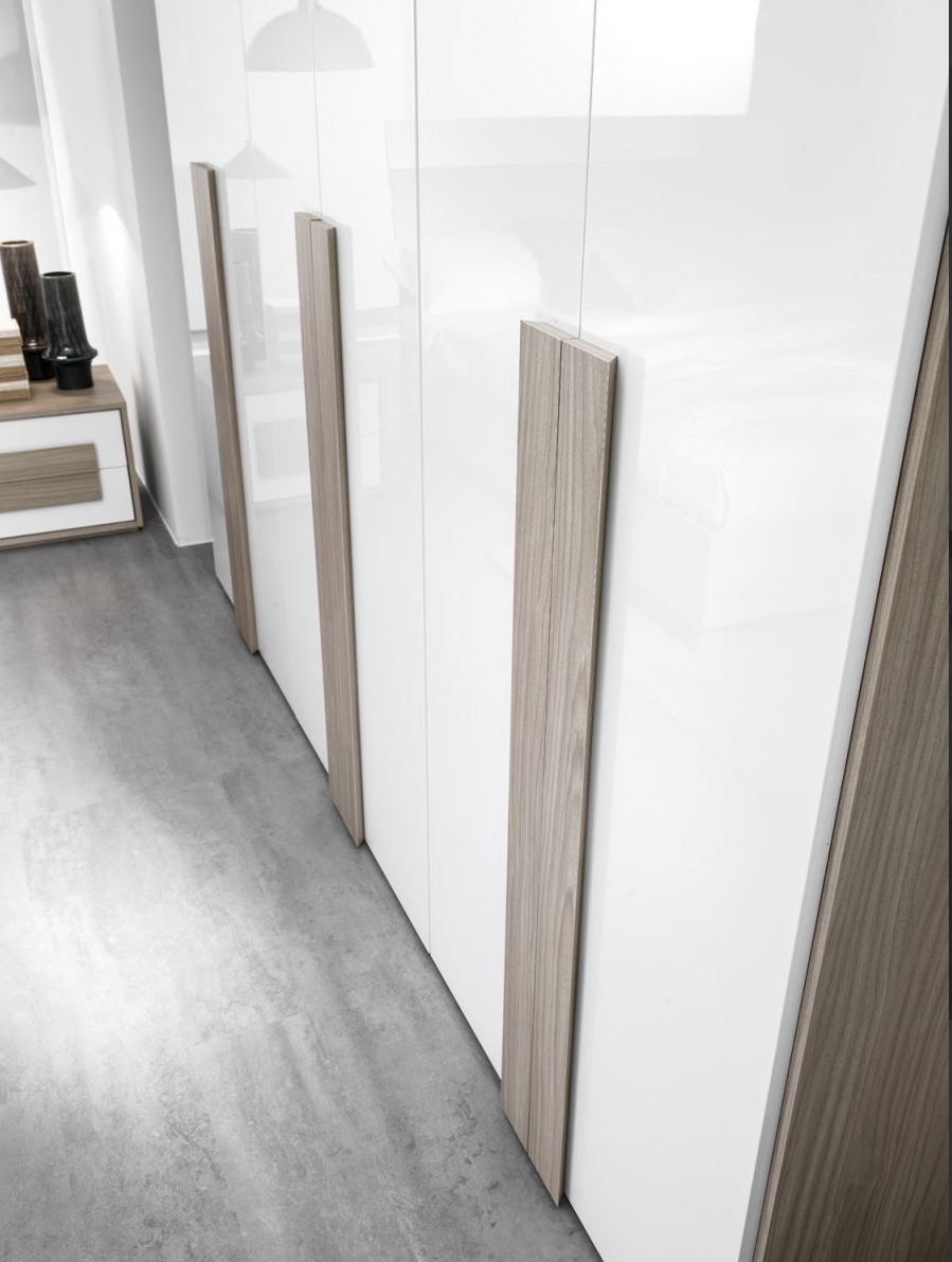 La camera matrimoniale completa Parma è una soluzione elegante e raffinata, ideale per chi desidera arredare la zona notte con uno stile moderno e luminoso. Il contrasto tra le superfici in bianco laccato e le maniglie in resina scura dona carattere e personalità all’ambiente, creando un effetto visivo di grande impatto.