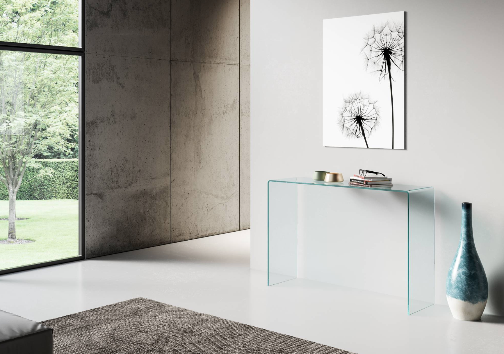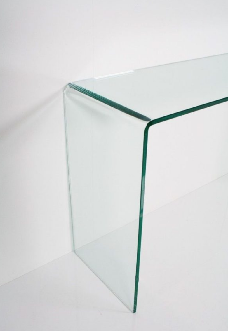 Splendida consolle in vetro curvato da 12 mm, dal design elegante e minimale. Le linee pulite e leggere la rendono un complemento d’arredo raffinato, perfetto per valorizzare qualsiasi ambiente senza appesantire lo spazio. Ideale come piano d’appoggio per oggetti decorativi, vasi o accessori, si inserisce con naturalezza in ingresso, corridoio o soggiorno.