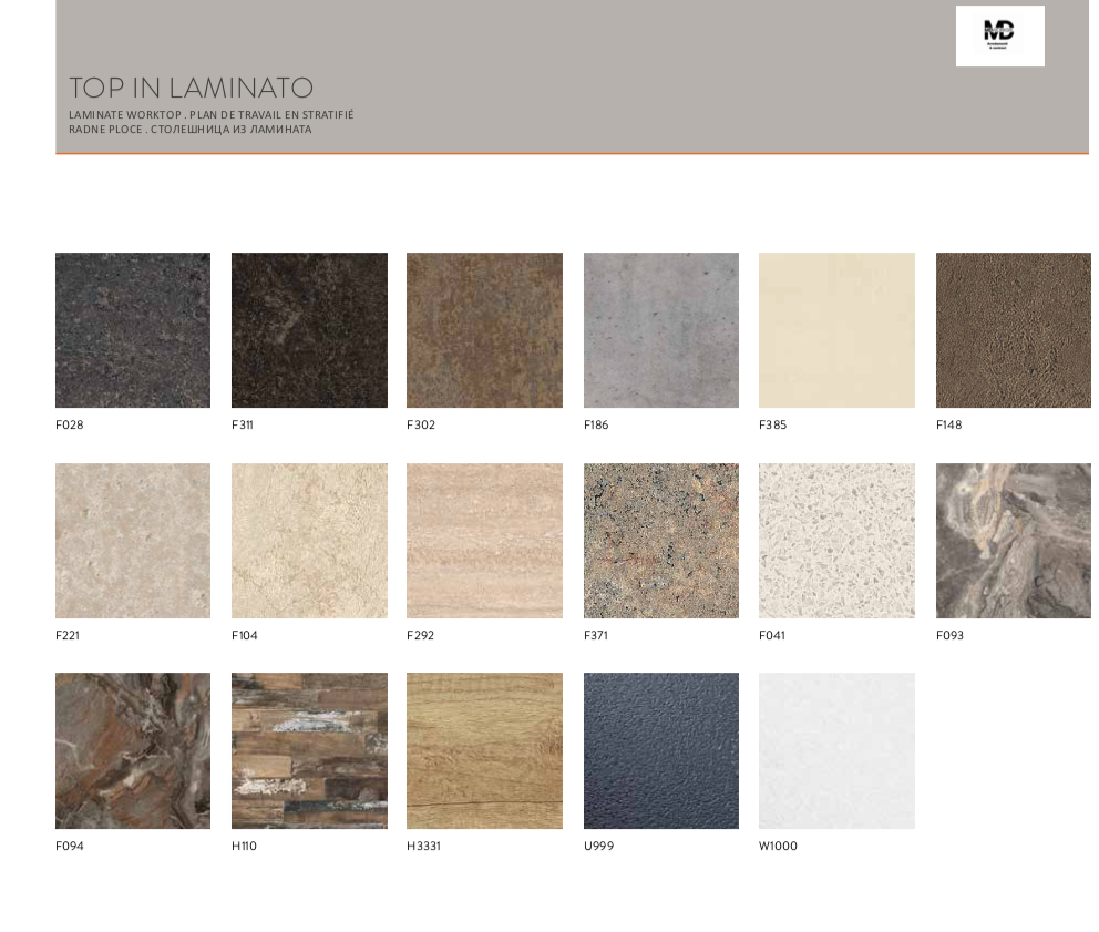 Top laminato disponibile in numerose finiture (marmo, legno, corten, ecc.)