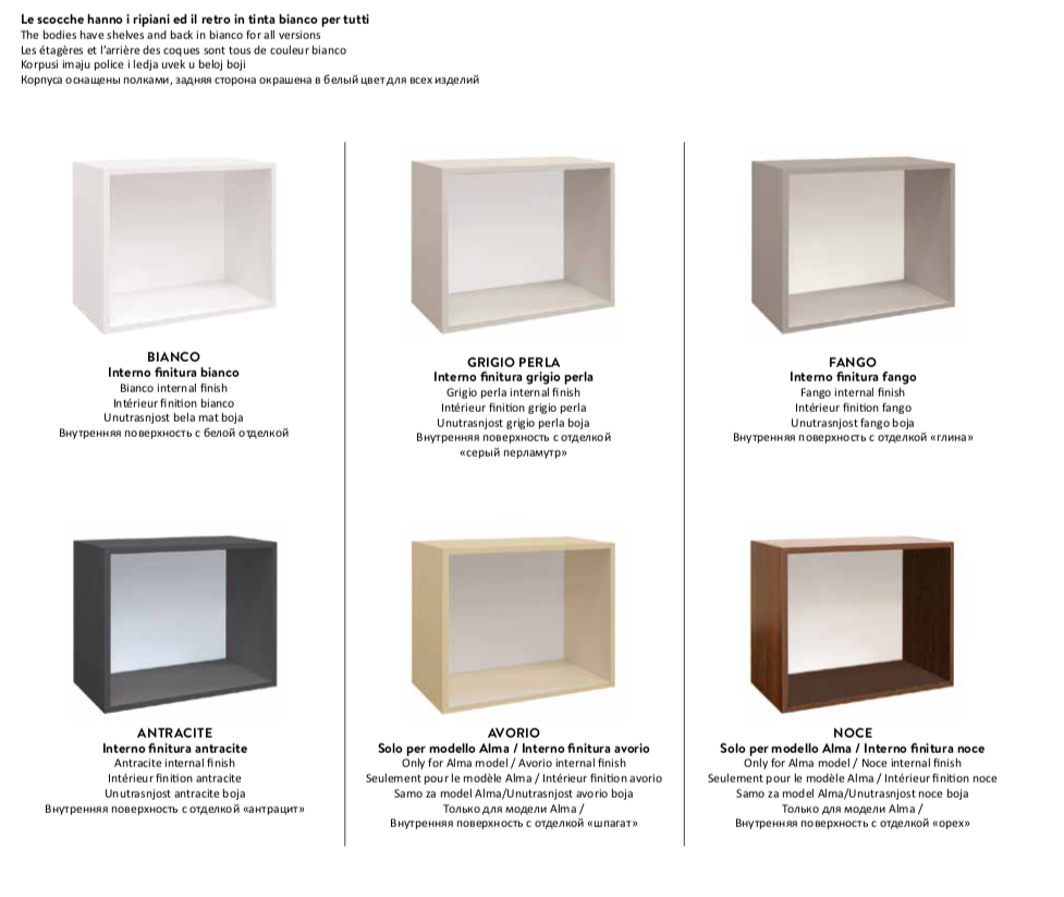 Bianco (interno bianco), Grigio Perla, Fango, Antracite