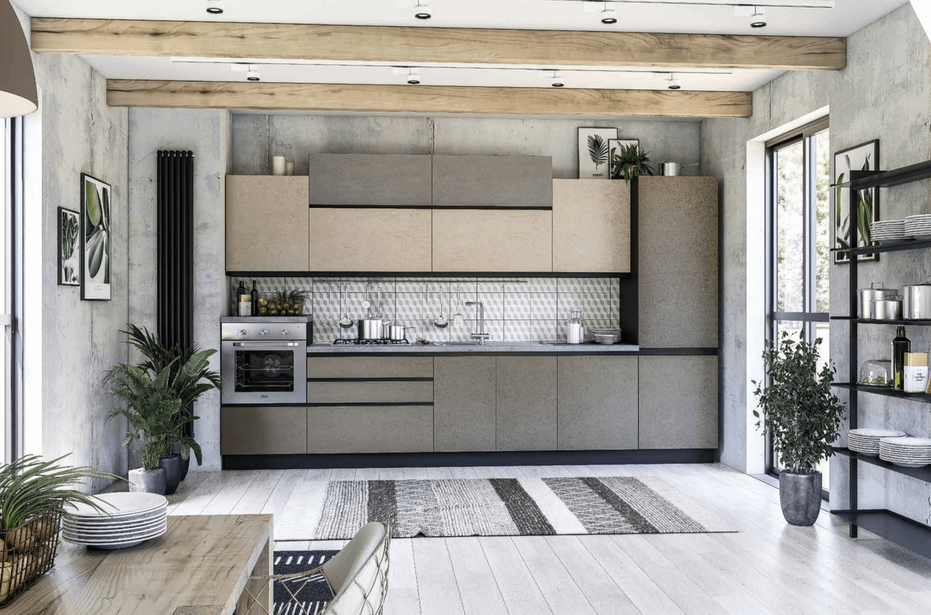 ANTRACITE ZOCCOLO ANTRACITE TOP IN LAMINATO H 4 CM. POST-FORMATO LAVELLO MONDIAL 86X50 2 VASCHEPIANO COTTURA DA CM 75 CON 4 BRUCIATORI FORNO MULTIFUNZIONE CON 6 FUNZIONI DI COTTURACAPPA INCASSO BOX INFRIGORIFERO COMBINATO H.178 CMLAVASTOVIGLIE 60 CM POSSIBILITA’ AVERLA SPECULARE.DISPONIBILE ANTA CEMENTO BIANCO/CEMENTO ARDESIAROSSO VINO OPACO/GRIGIO SETA OPACOROVERE RUSTICO/TORTORA LUCIDOROVERE NATURALE/BIANCO
