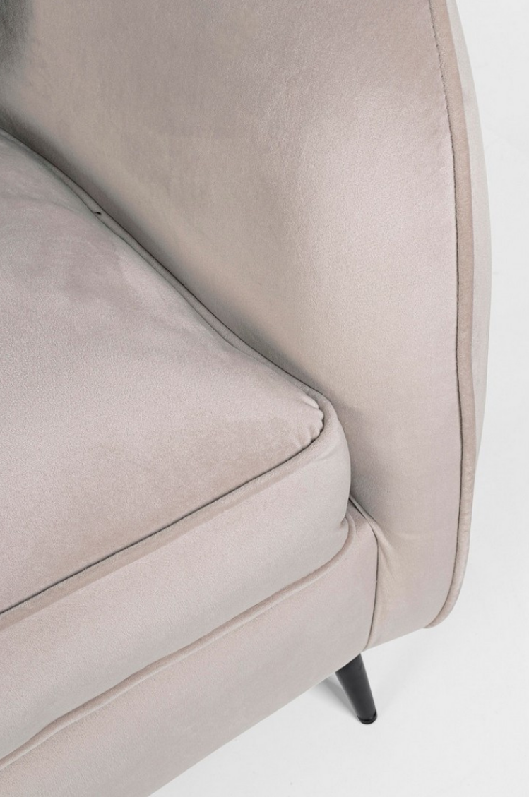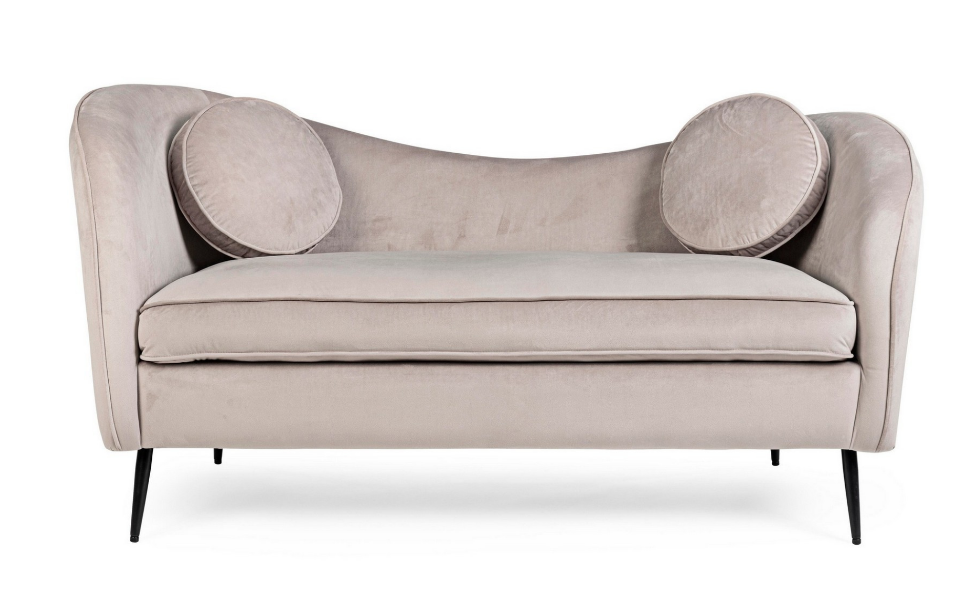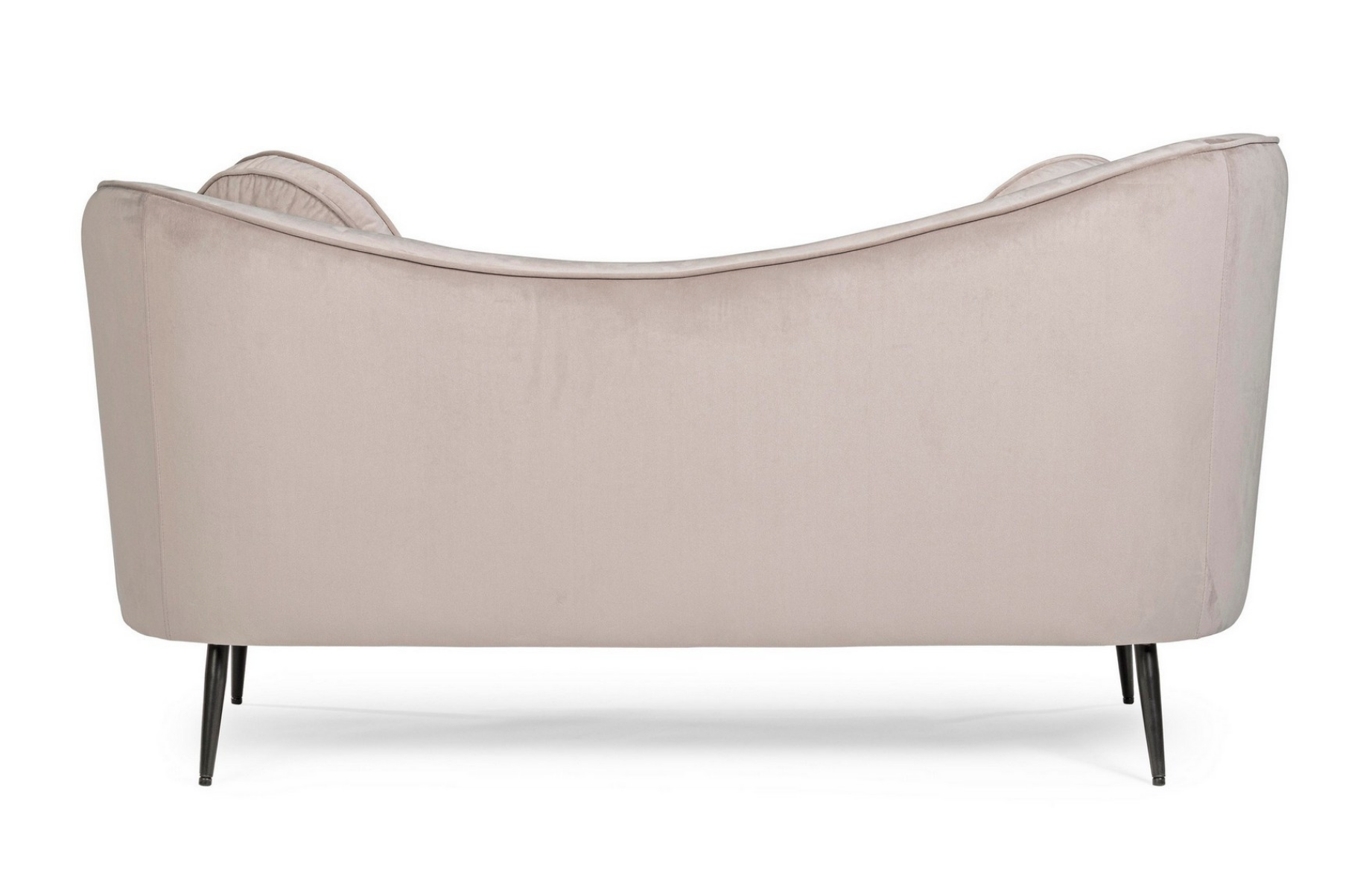 Il rivestimento in poliestere effetto velluto offre una sensazione morbida e piacevole al tatto, valorizzando l’estetica raffinata del divano. La seduta è confortevole grazie all’imbottitura in schiuma poliuretanica, con densità differenziate: 28 kg/m³ per la seduta e 18 kg/m³ per lo schienale, per un perfetto equilibrio tra comfort e sostegno. Completano il divano due cuscinetti sfoderabili, pratici e funzionali.