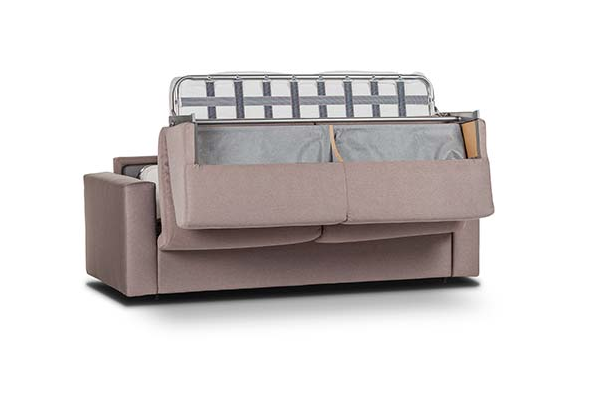 Una delle innovazioni più apprezzate del modello Passo è il pratico vano porta-guanciali nascosto all’interno dello schienale. Questa soluzione intelligente permette di riporre i cuscini del letto direttamente dentro il divano, liberando spazio prezioso negli armadi e mantenendo il salotto sempre ordinato.