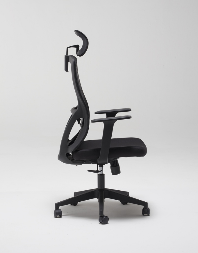 in poliuretano espanso e rivestito in tessuto nero , schienale in nylon rivestito in rete nera, poggiatesta regolabile in -