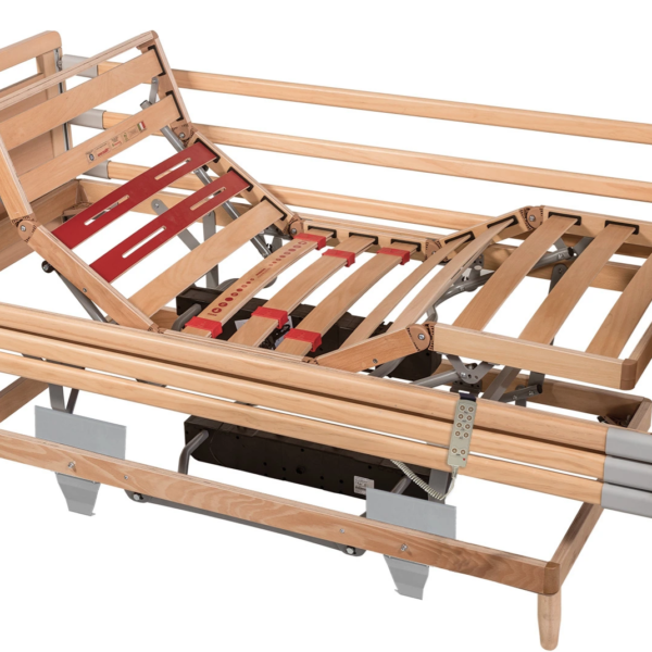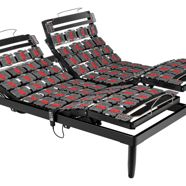 Rete con telaio in faggio naturale 60x25mm – 24 doghe in faggio rinforzato e regolatori di rigidità – alzata testa/piedi con due motori e posizioni indipendenti.