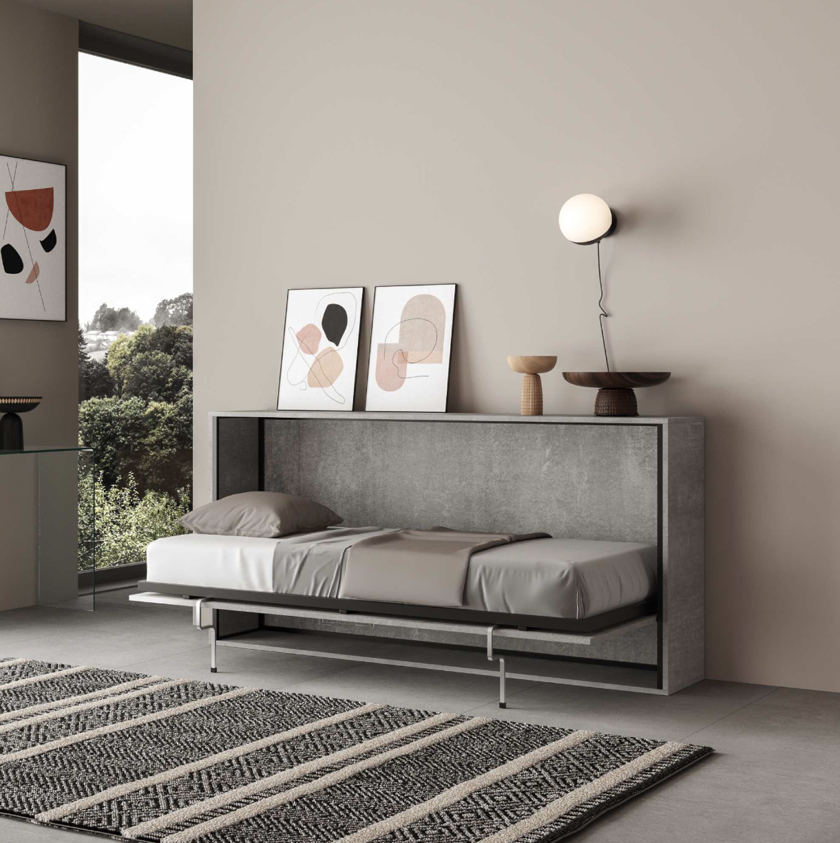 Il letto a scomparsa orizzontale singolo Kappa è la soluzione ideale per chi desidera ottimizzare gli spazi senza rinunciare al comfort. Progettato per ambienti moderni e dinamici, consente di trasformare con semplicità una zona giorno in una comoda zona notte, sfruttando al meglio ogni centimetro disponibile.