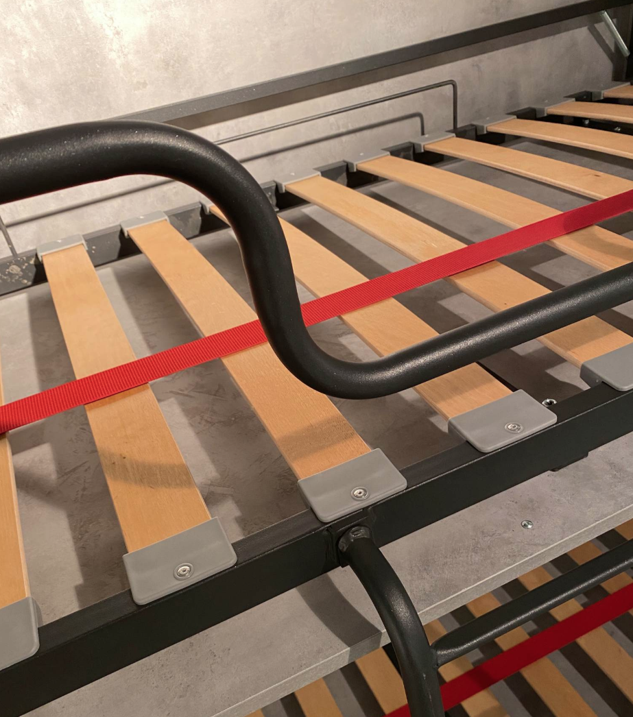 Le cinghie ferma materasso consentono di mantenere tutto in ordine anche quando il letto è chiuso. Il sistema interno di sicurezza assicura rigidità e stabilità durante l’utilizzo.