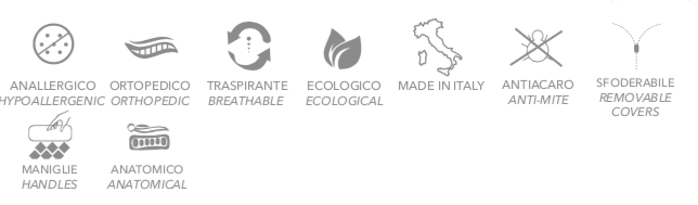 - Trapuntatura Pantografata. Cerniera doppia per sfoderabilità totale. 4 maniglie per facile posizionamento. Sfoderabile e lavabile singolarmente . Certificato per l’essenza d’arancia . Anallergico, ortopedico, ergonomico, ecologico. Made in Italy.