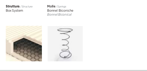- Struttura: 400 molle Bonnel biconiche in acciaio