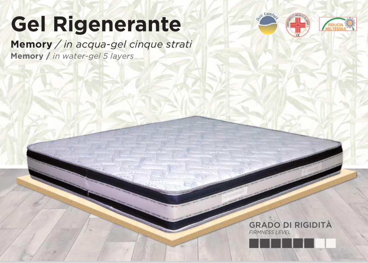 Il materasso Gel Rigenerante è progettato per offrire un riposo evoluto, fresco e rigenerante, grazie all’innovativa tecnologia Acquagel combinata con memory foam.