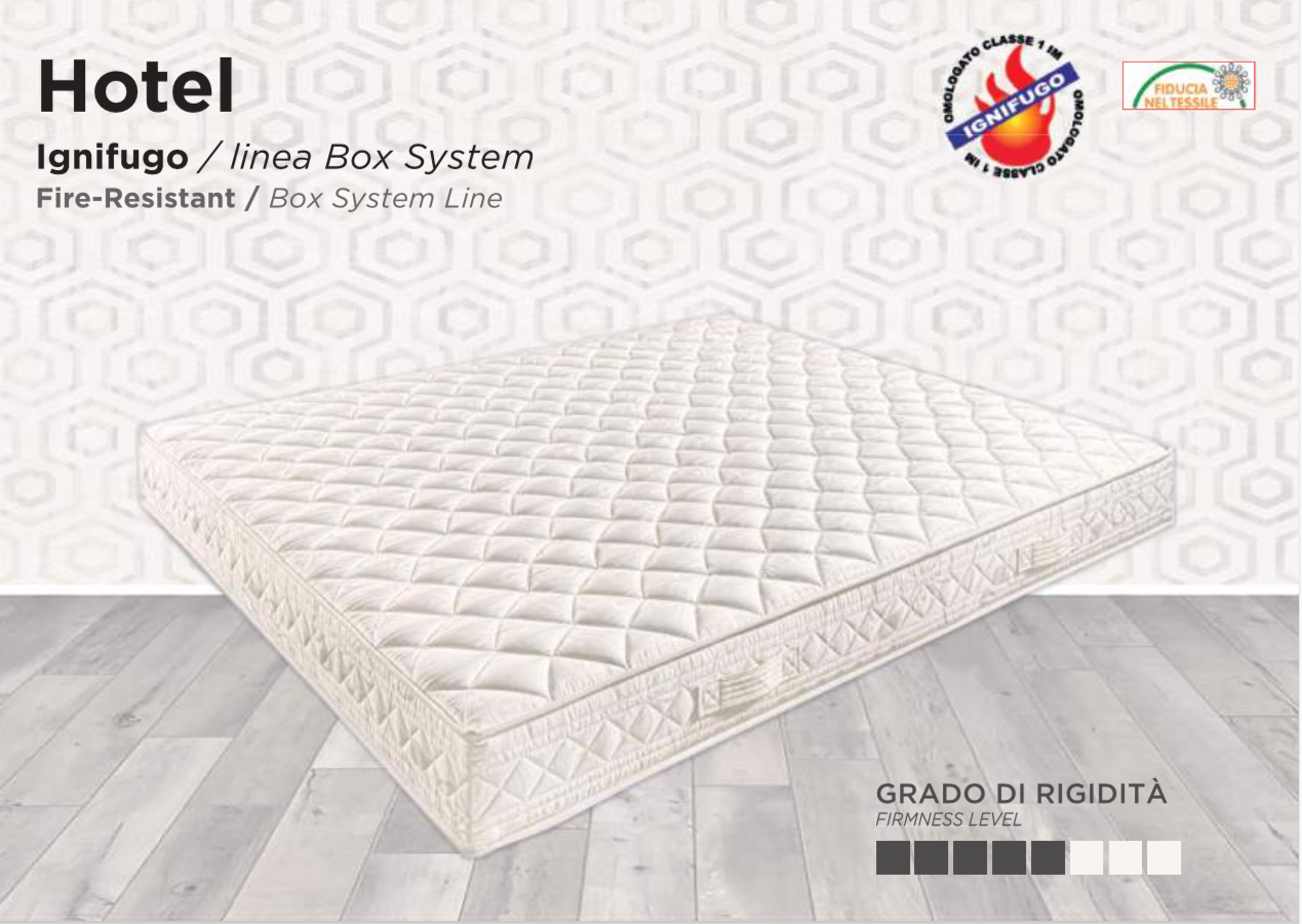 Il materasso Hotel Ignifugo – Linea Box System è progettato per soddisfare le esigenze del settore contract, come hotel, B&B, comunità e strutture ricettive, garantendo sicurezza certificata, comfort e durata nel tempo.
