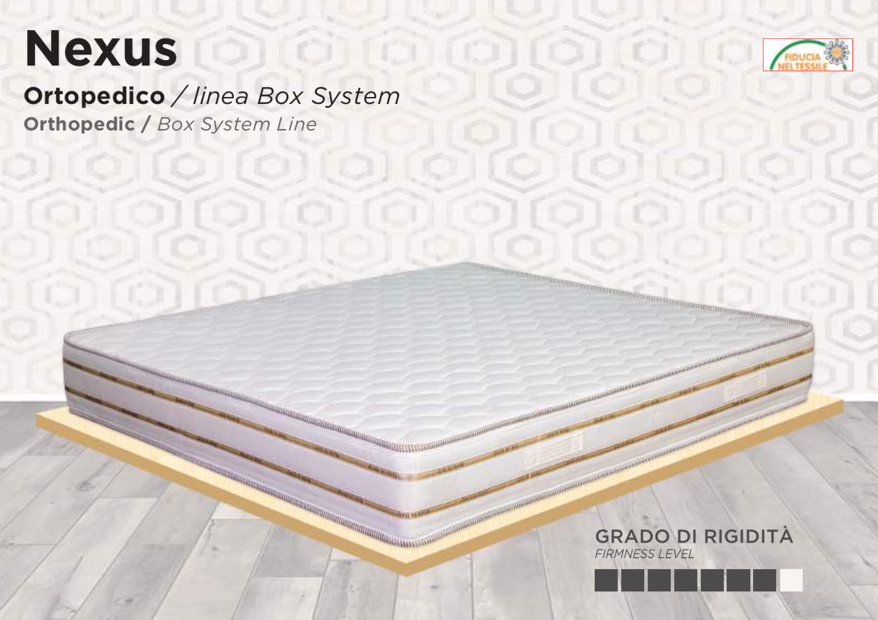 Il materasso Nexus Ortopedico è pensato per chi desidera un supporto deciso e una struttura robusta, ideale per garantire un riposo stabile e duraturo. Grazie alla sua elevata rigidità, è particolarmente indicato per chi preferisce un materasso portante e altamente ortopedico.