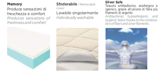 I filamenti d’argento assicurano proprietà antibatteriche, anallergiche e igienizzanti.