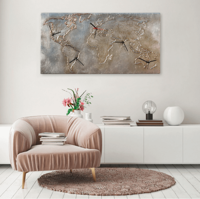 L’Orologio World Silver è ideale per arredare soggiorni, sale da pranzo, uffici o spazi pubblici, diventando il protagonista assoluto della parete. Un complemento d’arredo unico, pensato per chi desidera impreziosire i propri ambienti con un oggetto distintivo e di grande personalità.