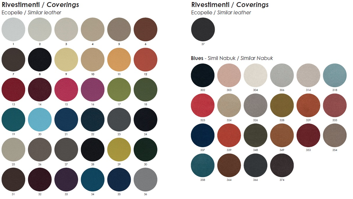 - Blue: simil nabuk morbido e moderno