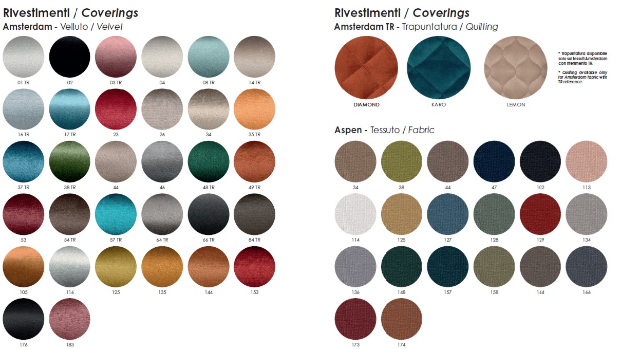 - Amsterdam: velluto elegante in circa 60 varianti colore