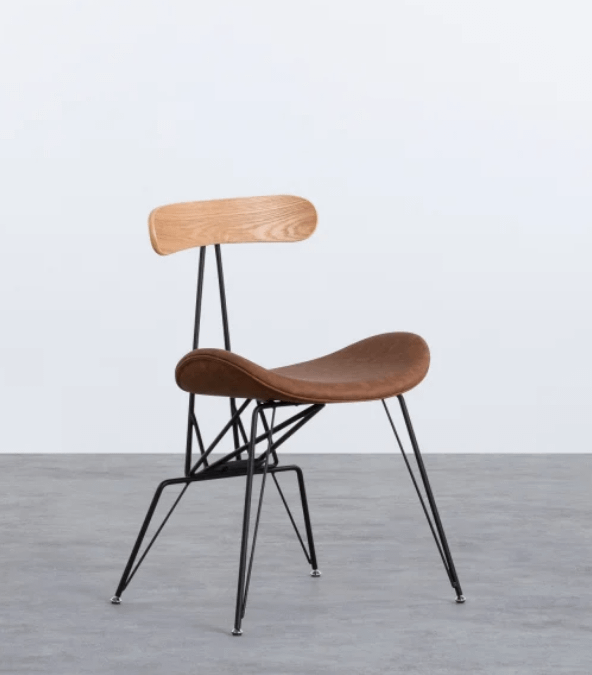 in acciaio, compensato di betulla e impiallacciatura di frassino sullo schienale, con seduta rivestita in similpelle. Una sedia perfetta per l’uso quotidiano in sala da pranzo, cucina o soggiorno. Per decorare una stanza o utilizzarla in un angolo lettura. Per una corretta manutenzione e durata del tessuto, pulire con un panno, evitando l’uso di prodotti chimici.