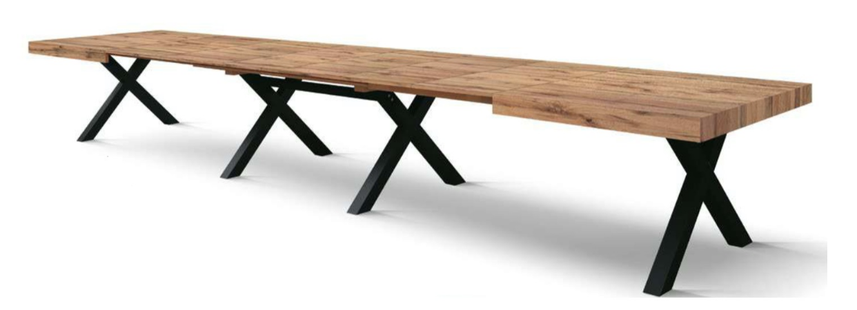 nero e piano finitura rovere rustico con 6 allunghe da cm. 50 Misura chiuso cm 180x90LxH77 Misura aperto cm 480 . Pronta consegna in 5 giorni .Il prezzo non comprende il trasporto , per avere il trasporto la quotazione , inviate una mail, con la regione di consegna sponda camion.