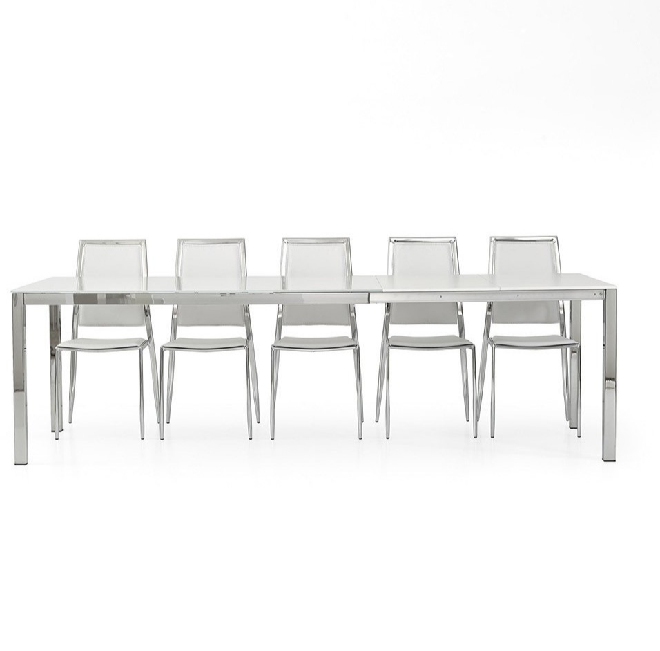 - in Metallo cromata. Misura chiusa cm. 160×90 H. 76 Misura aperta cm. 260×90 H. 76 Tavolo Piano Vetro